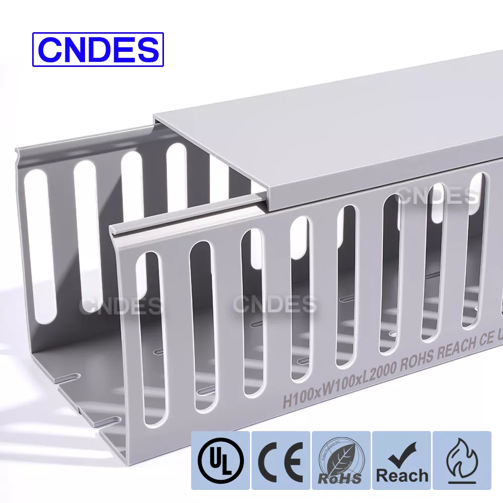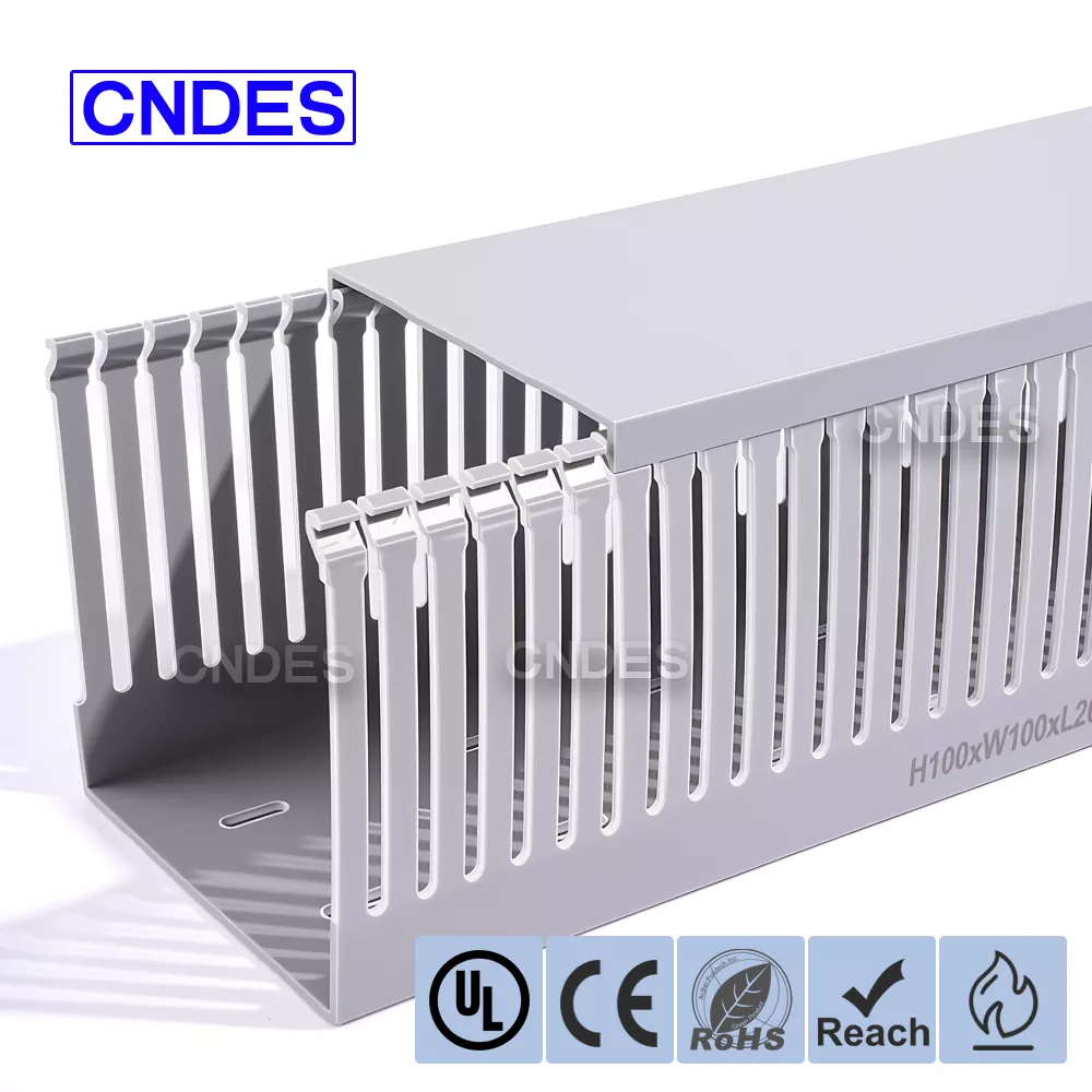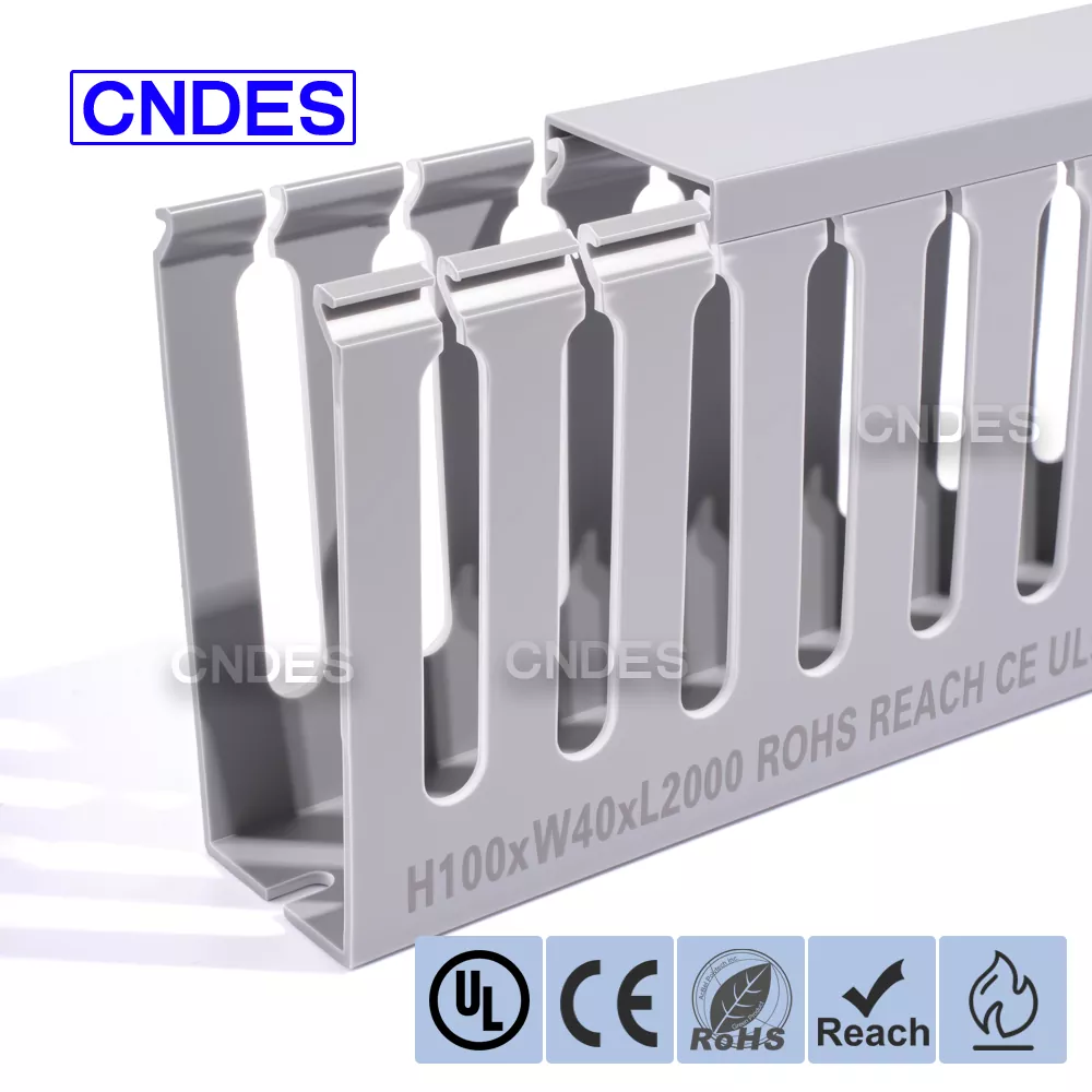 Ống dẫn dây bao bọc PVC có khe mở có chiều cao 100mm chất lượng được sản xuất từ vật liệu PVC chống cháy UL94 V-0, tự dập tắt sau khi nguồn lửa được loại bỏ, làm chậm hiệu quả lan truyền lửa và cải thiện an toàn điện tổng thể. Hiệu suất cách điện tuyệt vời của nó giúp ngăn ngừa rủi ro rò rỉ dòng điện và ngắn mạch, đảm bảo hoạt động ổn định trong vỏ điện và bảng điều khiển.