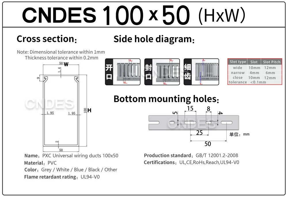 CNDES là nhà sản xuất khay cáp chuyên nghiệp với 24 năm kinh nghiệm, chuyên sản xuất Ống dẫn dây bọc nhựa PVC có khe hở chiều cao 100mm tùy chỉnh. Sau đây chúng tôi sẽ giới thiệu dòng sản phẩm khay cáp cao 100mm của mình.