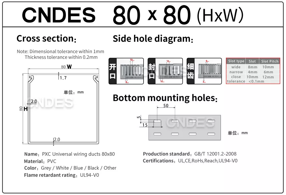 Khi các khay cáp tiêu chuẩn không thể chứa được các dây nối phức tạp, Ống nối dây bảng điều khiển PVC có rãnh 80 × 80 tùy chỉnh của CNDES là lựa chọn tốt cho bạn. Với không gian bên trong lớn 80mm*80mm, nó được thiết kế đặc biệt cho các tình huống có nhu cầu cao như hệ thống cáp đường trục của trung tâm dữ liệu, cụm nguồn thiết bị công nghiệp và hệ thống dây điện tập trung trong tủ điều khiển lớn. Nó dễ dàng chứa và sắp xếp một số lượng lớn cáp, tạm biệt tình trạng lộn xộn và tắc nghẽn một lần và mãi mãi.