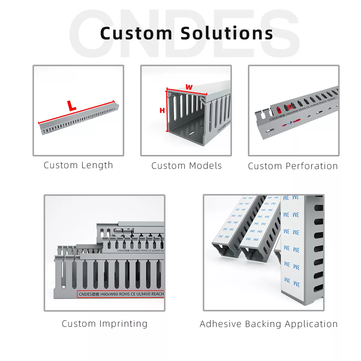 Kích thước tùy chỉnh – Ống dẫn đường dây có thể được điều chỉnh theo kích thước cụ thể, ví dụ: chiều cao 75mm × chiều rộng 75mm.